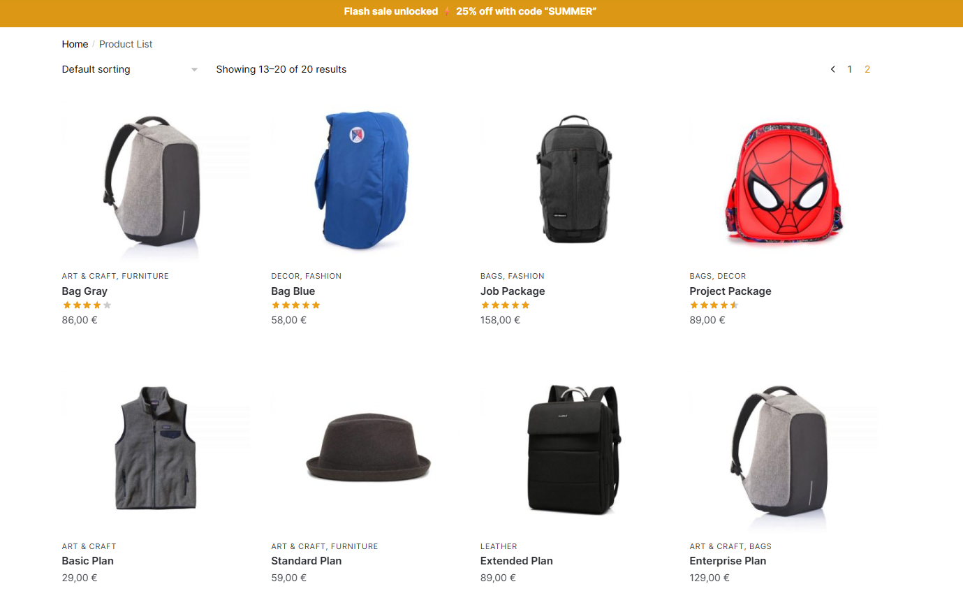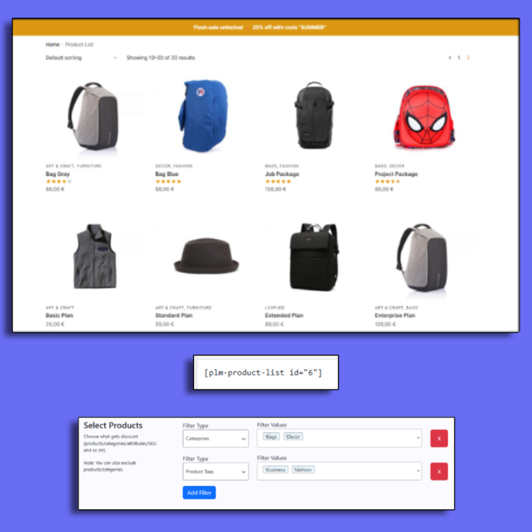 Tired of being limited by default shop or category pages? With Product Lists Manager, you can create fully customizable product lists and showcase them wherever you want using a simple shortcode.