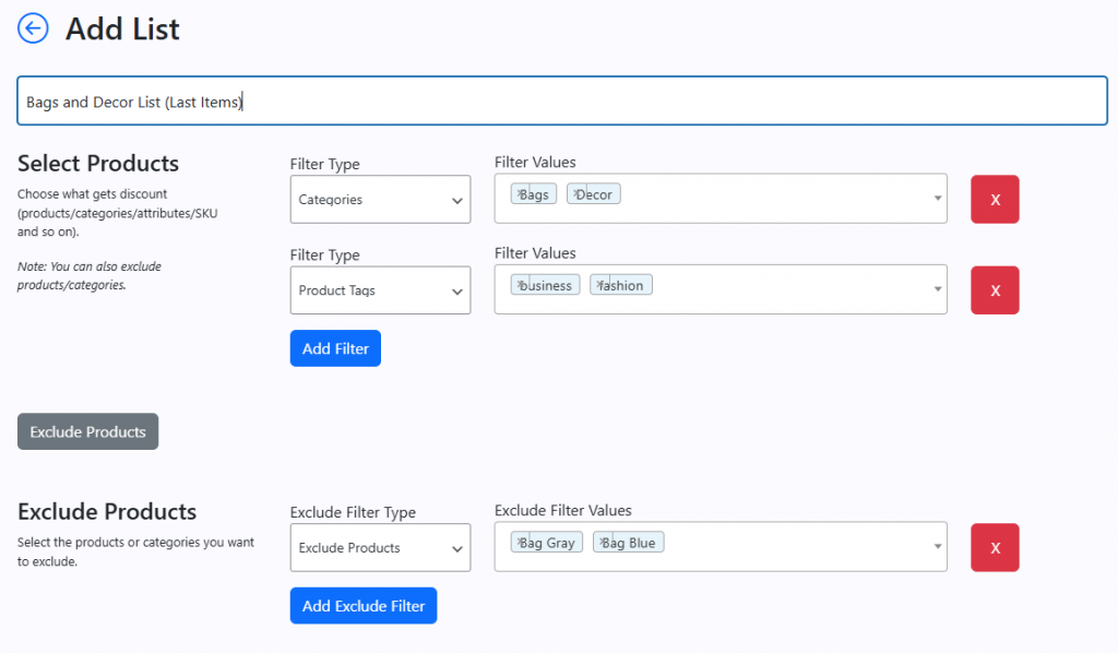 Easily Exclude Products, Categories or Tags from your lists to fine-tune exactly what shows.